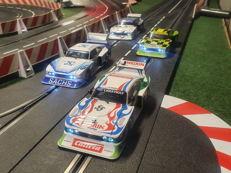 Gefahren wird bei uns auf digitalisierten Fahrzeugen der Hersteller Carrera, Revoslot, Scalextric im Maßstab 1:32 und ausschliesslich magnetlos. Wir verwenden Ortmann sowie andere PU Reifen. Motoren, Achsen, Lager etc. sind von Slot It, Slot devil und weiteren Herstellern. Diese findet Ihr in unserem Linkbereich.